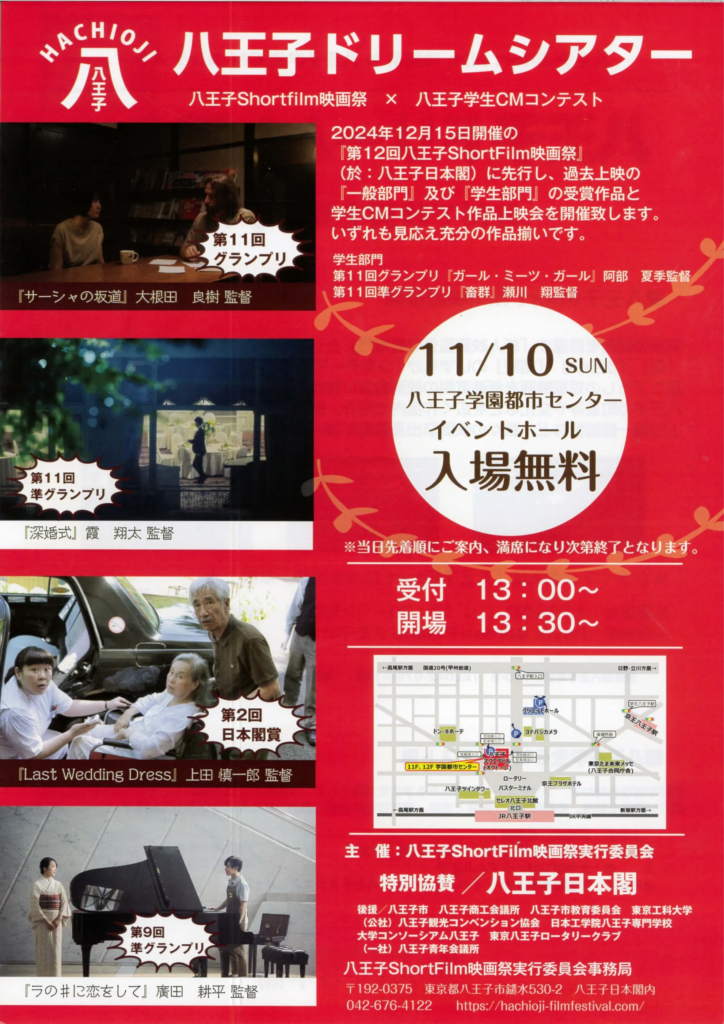 2024年11月10日、オリンパスホール八王子で開催されるこのイベントに、ぜひ足を運んでみてはいかがでしょうか。新しい発見と感動が、きっとあなたを待っています。短編映画の魅力、学生たちの斬新なアイデア、そして八王子の新たな魅力。これらすべてを一度に体験できる、貴重な機会をお見逃しなく。